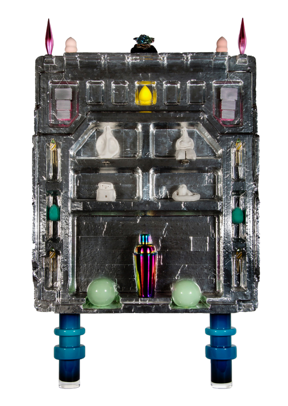Lápiz sanguina sobre terciado de guatambú. Pino reciclado con encastre de metal y remaches