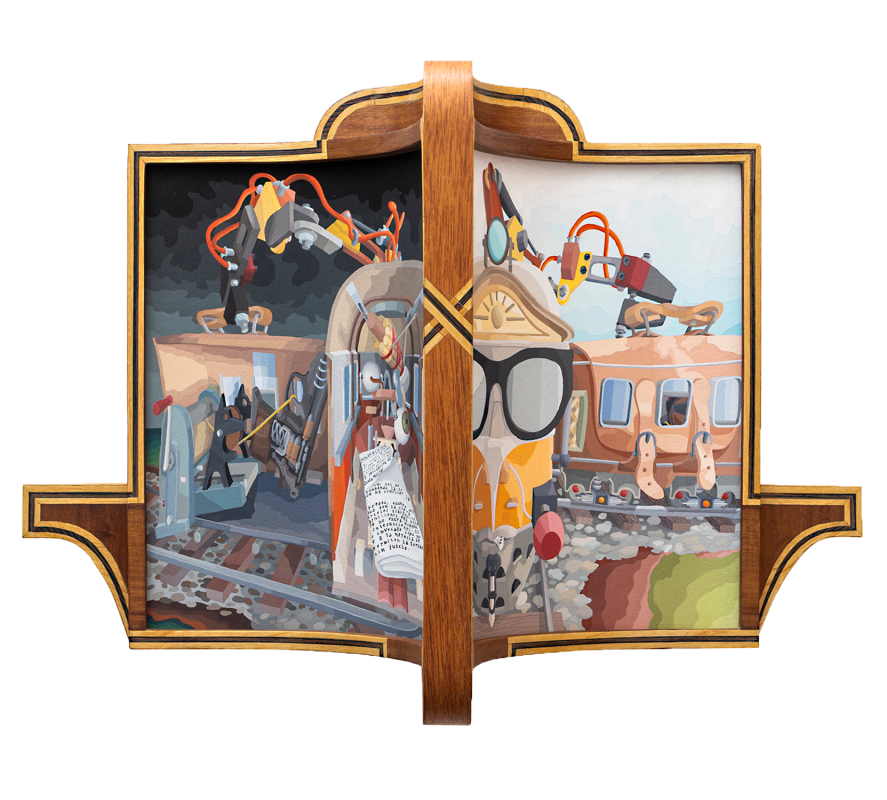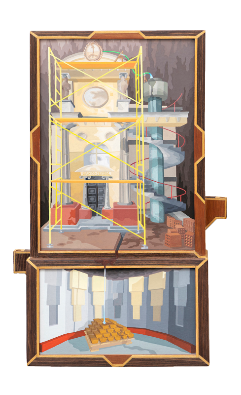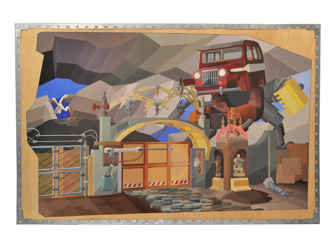 Fragmentos de paisajes. Óleo sobre tela, esmalte sintético negro mate, madera y pegamento
