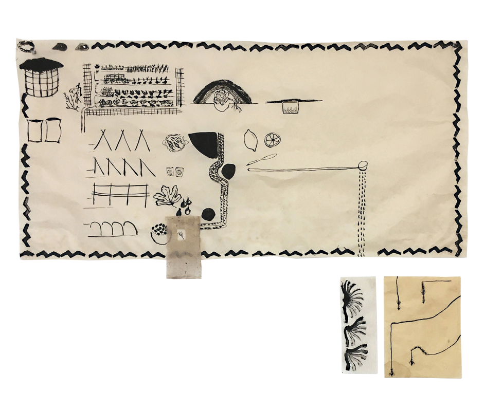Bordado sobre tela, ñandutí, cintas y dibujo en carbonilla